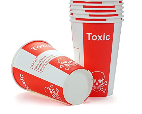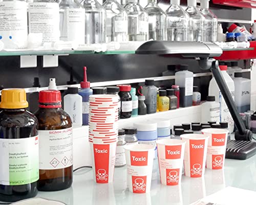 Bicchieri in carta per sostanze tossiche, da laboratorio, capienza 200 ml, con simbolo di sostanza tossica/velenosa, adatti anche a party (confezione da 100 pezzi)