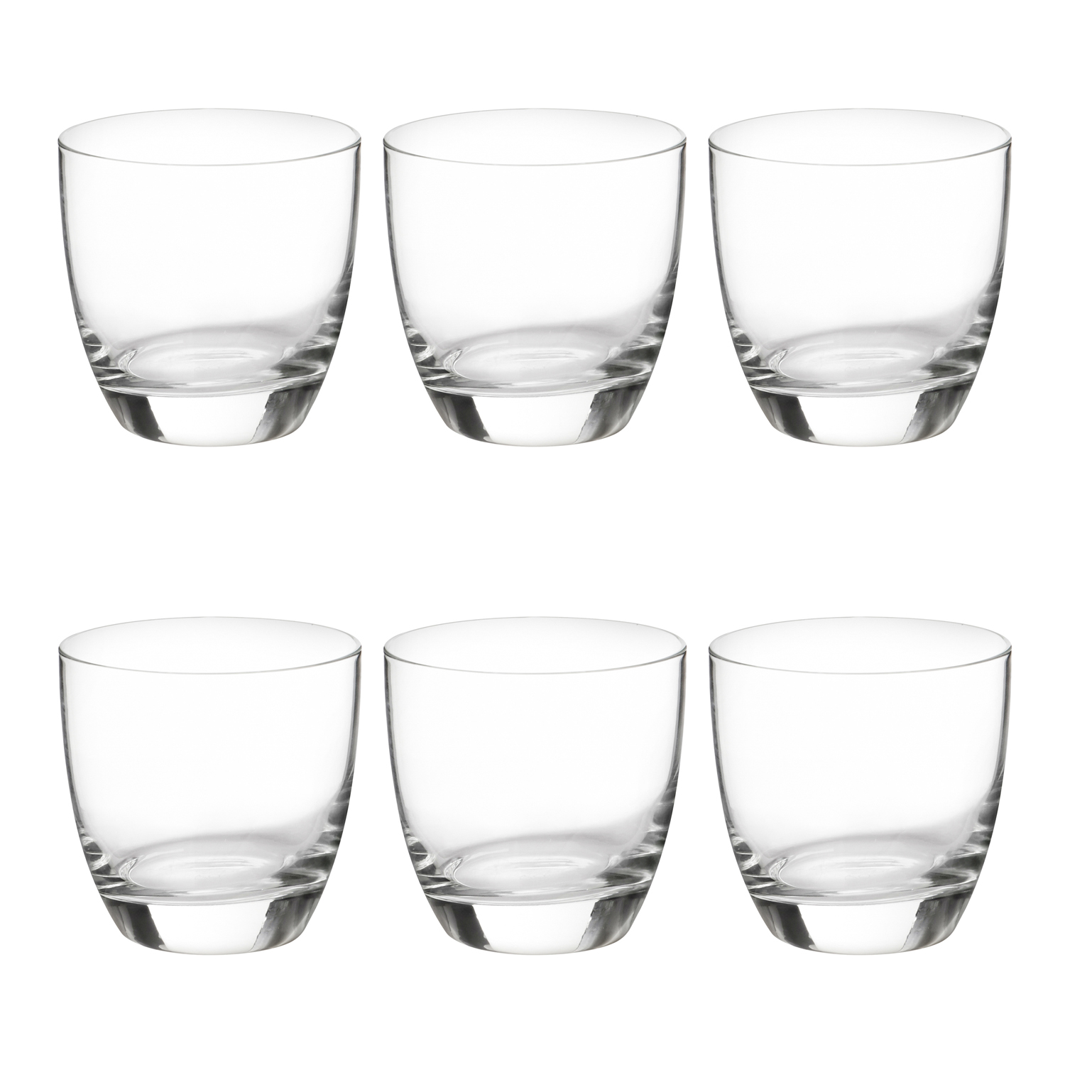 Set da 6 bicchieri in vetro. Dalle linee sobrie ed eleganti, si adatteranno perfettamente alla vostra cucina senza problemi, qualsiasi sia il suo arredamento. Realizzati interamente in vetro trasparente, consentono di vedere immediatamente quando il contenuto sta per terminare e riempirli di nuovo. Lavabili in lavastoviglie non perdono la loro lucentezza anche dopo numerosi lavaggi, facilissimi da riporre.
