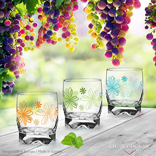 Set di 6 bicchieri con stampa floreale da 250 ml, bicchieri per acqua e succhi di frutta, con bel fondo, misura piccola