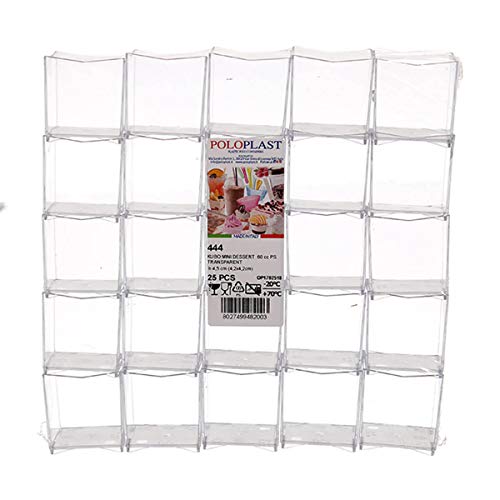PZ 25 Bicchierini da CC 60 MONOPORZIONI Quadrati Kubo in PLASTICA Trasparente per Dessert E Finger Food