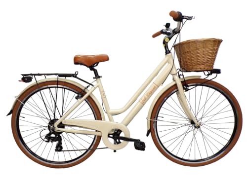 Bicicletta da donna bici 28'' city bike in alluminio beige vintage retro' cesto in vimini
