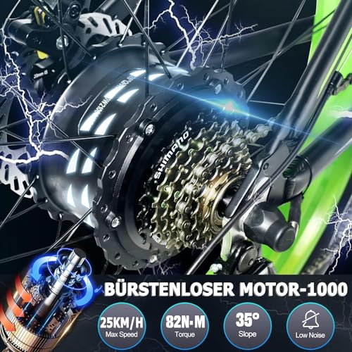 【Motore Super Power】 Motore ad alta velocità da 48 V, alta potenza. Questo motore brushless può generare un'enorme coppia di 85 Nm e scalare pendenze superiori a 40°. Così puoi goderti la gioia dell'alpinismo e della guida fuoristrada. La Bicicletta elettrica ha tre modalità di guida, ciascuna con 5 velocità regolabili.