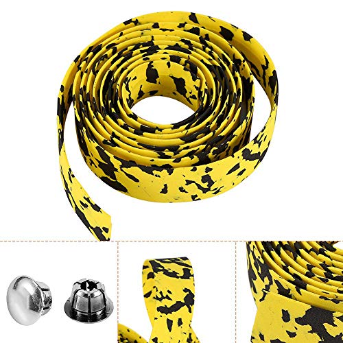2PCS Bici da Bicicletta Nastro, Involucro Riflettente per Bici avvolgicavo Impugnature da Bicicletta con Tappi per Barre per Bici da Strada e Ciclismo(Giallo + Nero)