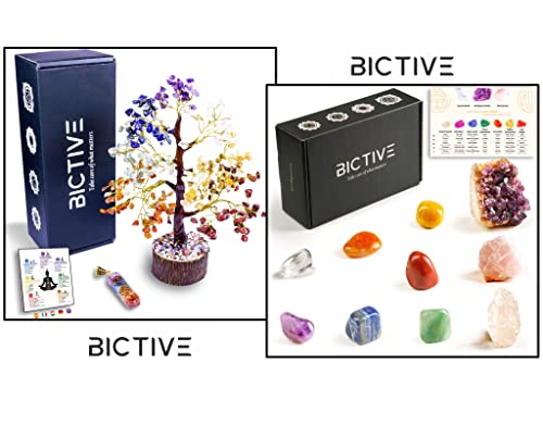 BICTIVE Albero della Vita Pietre Chakra e Collana Pietre. Pietre e Cristalli, Pietre Naturali, Cristalli Chakra, Ametista Pietra, Meditazione Oggetti, Albero della Vita Soprammobile, Pietre Curative