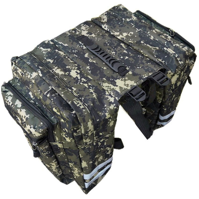 Questa borsa da bici presenta due ampi scomparti principali e tasche laterali, super spaziose per la tua pedalata. e facile da installare sul portapacchi posteriore della tua bici. Caratteristiche: Due ampi scomparti principali con tasche laterali offrono ampio spazio di archiviazione. Tessuto in poliestere 600D con rivestimento interno in PVC, resistente all'acqua e all'usura. Le strisce riflettenti aumentano la visibilita e la sicurezza notturna. Le cinghie regolabili si adattano alla maggior parte dei portabici, facili da installare. Grande capacita, ideale per le lunghe distanze. specifiche tecniche: Materiale: tessuto in poliestere 600D Colore: nero / blu mimetico / verde mimetico (opzionale) Dimensione complessiva: ca. 60 * 30 * 30 cm / 23,6 * 11,8 * 11,8 pollici Peso: ca. 0,65 kg / 1,4 libbre Elenco dei pacchetti: 1 * Borsa posteriore per bici