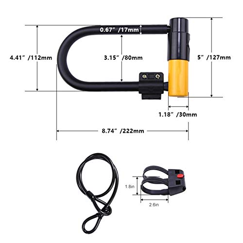 Bicicletta U-lock combin con cavo d'acciaio può garantire una maggiore protezione per il fissaggio della ruota anteriore o accessori.Con cavo in acciaio di alta qualità 4ft consente una maggiore flessibilità di bloccaggio.