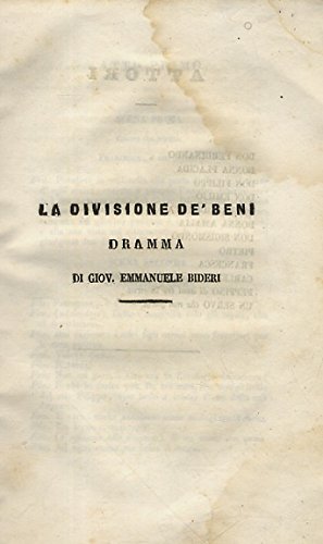Bideri (Bidera) Giovanni Emmanuele. - LA DIVISIONE DE' BENI. DRAMMA.