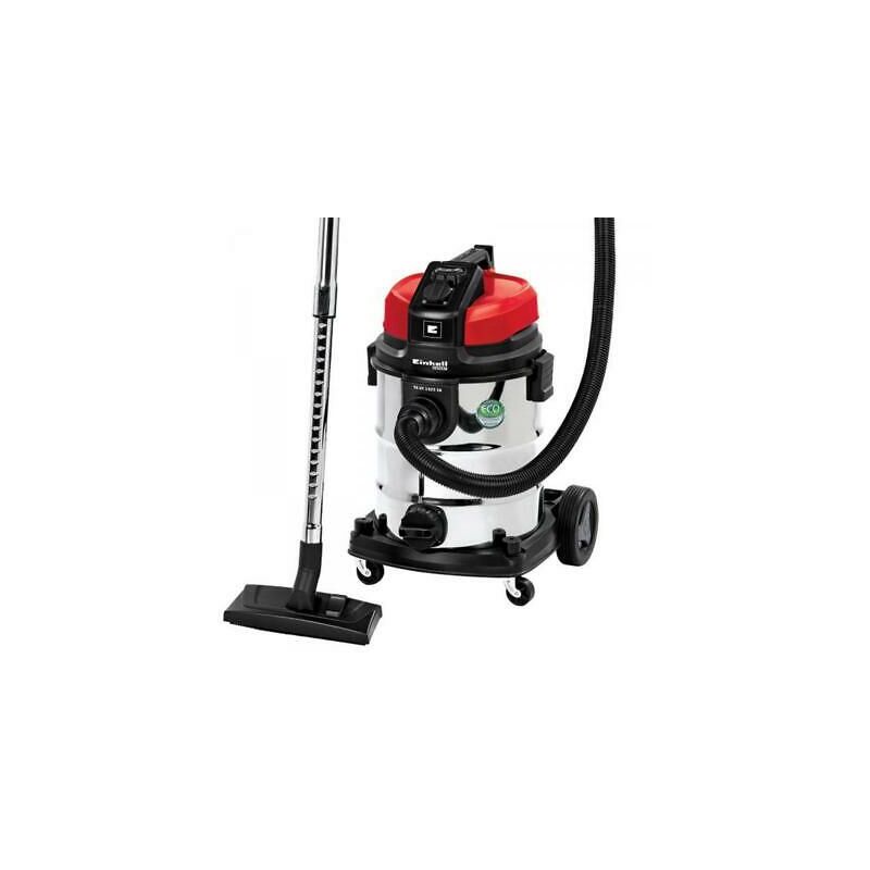 BIDONE ASPIRATORE ASPIRATUTTO SOLIDI E LIQUIDI EINHELL TE-VC 1925 SA DA 25LT Dotato di motore potente, efficiente e silenzioso, pratico porta accessori, attacco per soffiatore, tubo aspiratore extra lungo (3 m), tubo aspiratore in acciaio incluso (telescopico), grandi ruote e rotelle per maggiore scorrevolezza, supporto per accessori integrato, regolatore aria sull‘impugnatura, filtro in spugna per liquidi incluso, ugello per imbottiti, per fughe, combinato, adattatore per utensili, serbatoio in acciaio e presa per elettroutensili max. 2.600 Watt. Tensione: 230 V ~ 50 Hz;