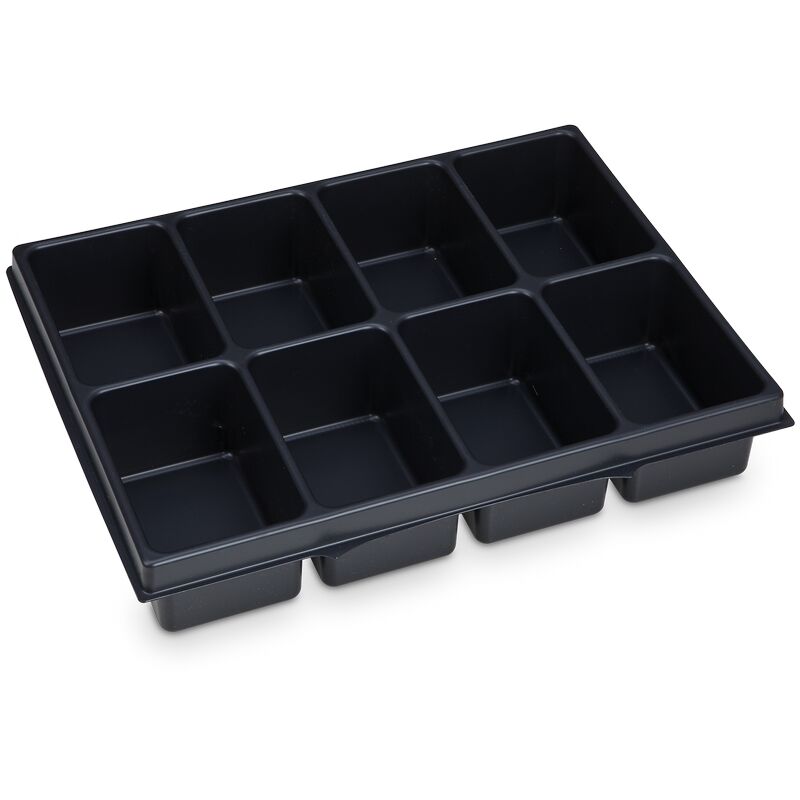 La fornitura comprende: - 1x vassoio per minuteria a 8 scomparti iB 72 Descrizione del prodotto: Il vassoio per minuteria iB 72 a 8 scomparti è realizzato in plastica termoformata di alta qualità e offre un modo economico per compartimentare in modo ottimale i vostri i-BOXX 72 e LS-Tray 72. Con i suoi 8 scomparti, è possibile tenere i piccoli pezzi in ordine. Grazie alla sua struttura robusta, l'inserto è duraturo e resistente agli urti e all'usura. L'inserto ha una lunghezza di 63 mm e una larghezza di 265 mm, per cui si adatta perfettamente a i-BOXX 72 e LS-Tray 72.