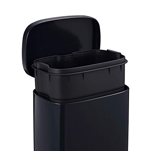 Mari Home Bidone Riciclaggio Singolo 5L | Bidone Spazzatura | Cestino Coperchio Piatto | Camera, Bagno, Cucina, Giardino | Pattumiera con Pedale e Secchio Interno | Nero