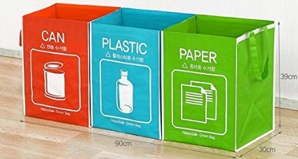 Raccolta differenziata 3 pezzi separati per can, plastica, carta