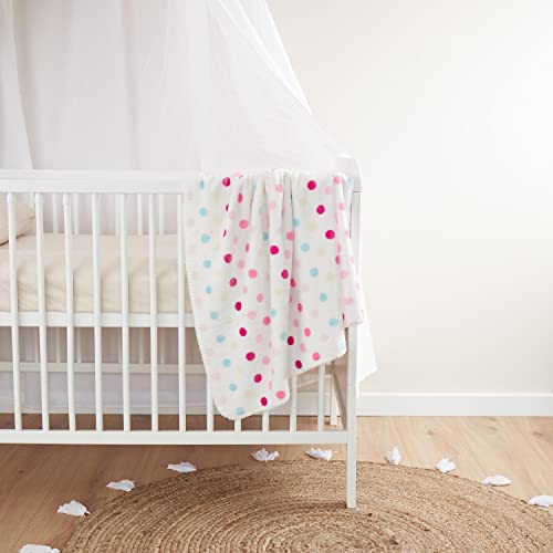 La coperta del bambino decorata in bianco e rosa, i puntini blu e rosa luce perfetta per piccole principesse. Insieme con la perfetta pecore coccolone il regalo ideale