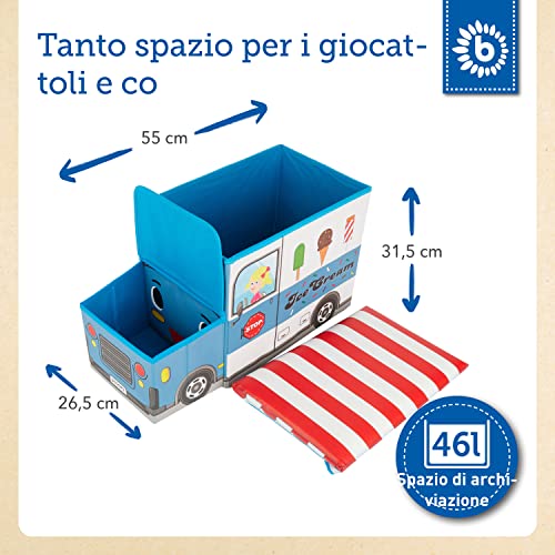 CONTENUTO DELLA CONFEZIONE: 1 contenitore giochi bambini e panca blu. Design: Icecreme;