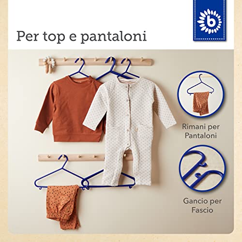 CONTENUTO DELLA FORNITURA: 1x appendino bambino, 8 pezzi in blu scuro. Dimensioni approssimative 29,5x 18x 0,7 cm. Peso circa 154 g. Materiale plastica.