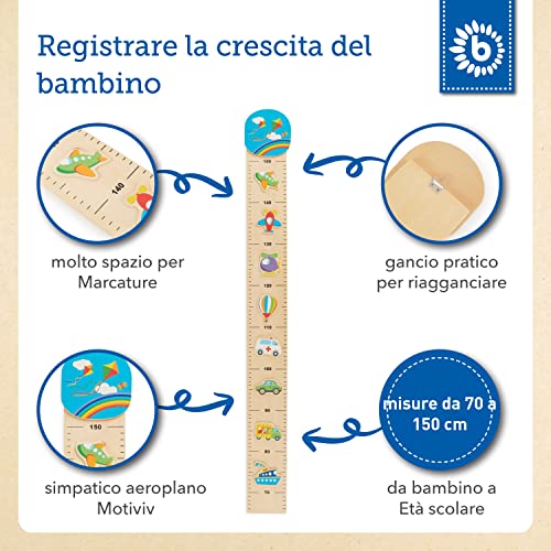 LEGNO SOSTENIBILE: l'asta di misurazione per bambini è realizzata in legno e presenta simpatici traffico. Un classico per la stanza di ogni bambino.