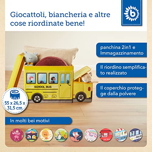 Bieco Scatola Porta Giochi Bambini Contenitore Scuolabus Box Giocattolo Cesta Bambina Bambino Regalo Neonato Scatola Salvaspazio Baule Organizer Cameretta con Coperchio Morbido Due Scompartimenti