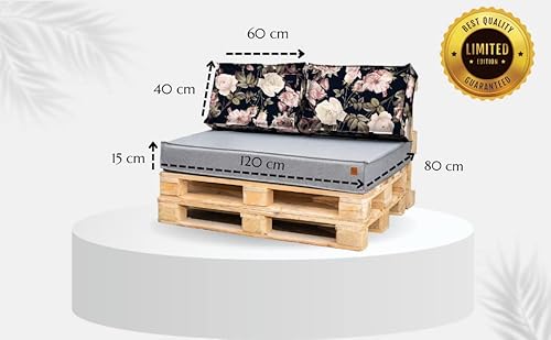 Bielik Cuscini per Pallet 120x80 Set per Divano Pallet, Impermeabili Cuscino Pallet Prodotto nell'UE, Cuscini da Giardino 3 parti Set (Grigio + Rose)