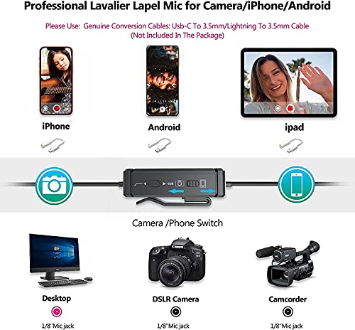 【Cavo di prolunga 2M + 4M】 Il cavo del microfono Lavalier è di 6 metri totale. Il cavo originale è di 2 metri e il cavo di estensione è di 4 metri. Non devi preoccuparti di registrare suoni su lunghe distanze. Muoviti liberamente durante la registrazione di video. Plug and play, super comodo da usare sempre e ovunque.