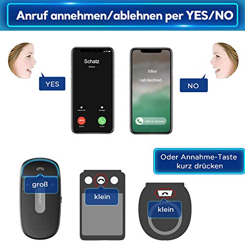 【Rispondi alle chiamate in sicurezza】 Dì semplicemente "YES"/"NO" dopo aver squillato per rispondere/rifiutare le chiamate. Puoi anche trasmettere in streaming le tue canzoni preferite o i messaggi vocali GPS direttamente dal tuo smartphone al sistema vivavoce. Bluetooth kit supporto Siri e Google Assistant: premi a lungo il pulsante multifunzione e Siri o Google Assistant ti aiuteranno con le informazioni o la navigazione.