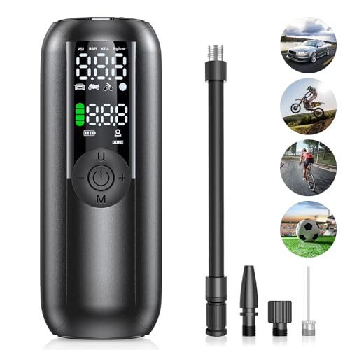 Bievin LP1 Compressore Aria Portatile, Elettrica Pompa per Bicicletta, Mini Compressore Pneumatici per Auto Ricaricabili con 3 Valvole Diverse per Auto, Moto, Biciclette e Palloni