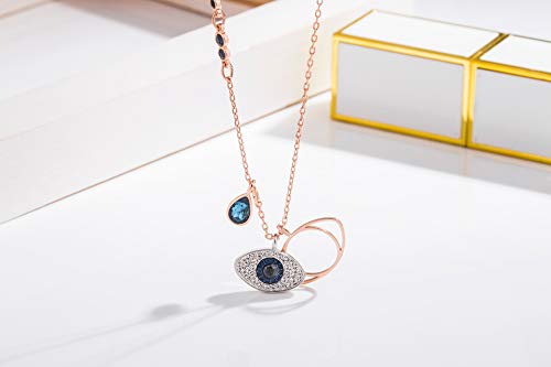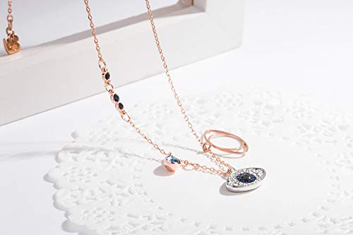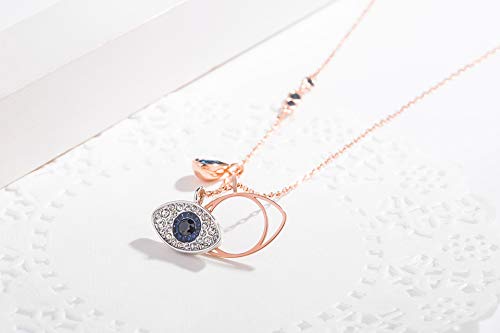 ✔ Design: presenta un motivo a occhio in pavé di cristallo blu, nero e trasparente e uno in metallo placcato oro rosa. Il ciondolo viene fornito su una catena placcata in oro rosa impreziosita da cristalli blu scuro, il ciondolo Duo Evil Eye aggiunge un tocco mistico a qualsiasi look.