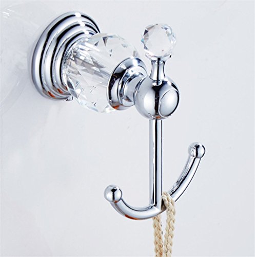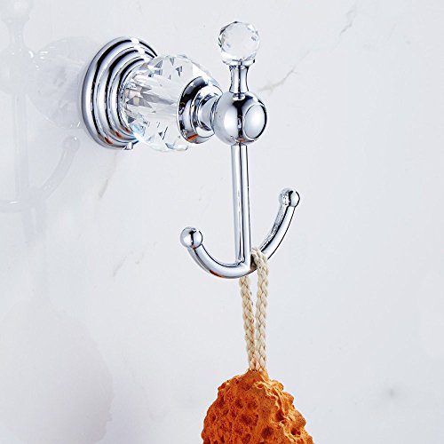 BigBig - Ganci per asciugamani da bagno con cristallo trasparente, finitura cromata con 2 ganci, accessorio da bagno in stile europeo, montaggio a parete