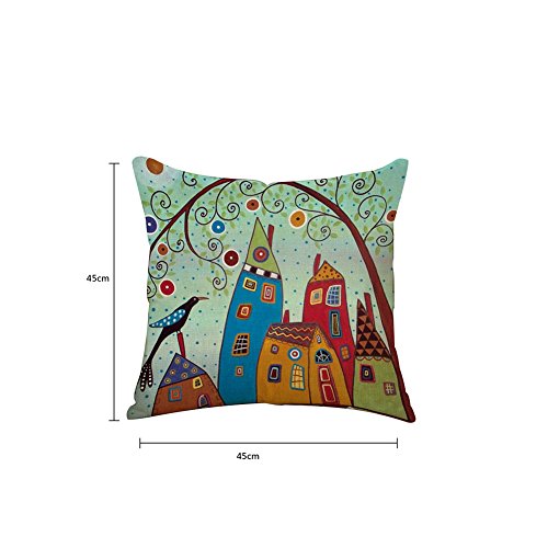 BIGBOBA Stile Vintage Dipinto Ad Olio Federe Cuscini Divano Alberi e Fiori Tridimensionali Motivo di Lino di Cotone Divano Letto Home Bed Decor 45 * 45cm (P)