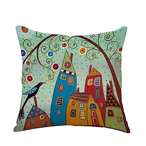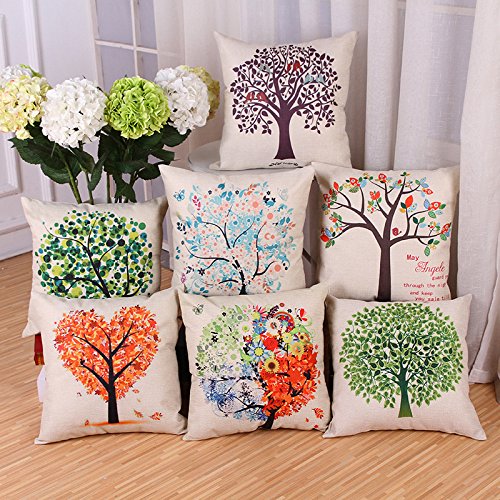 -Questo cuscino è realizzato in morbido poliestere (lino) per una sensazione molto confortevole. Stile vintage0 dipinto ad olio design di motivo alberi e fiori tridimensionali, unico e bellissimo. Questa federa aggiunge un tocco di lusso all'arredamento della casa, cerniera invisibile cuciture strette, stampa impeccabile, cerniera nascosta.