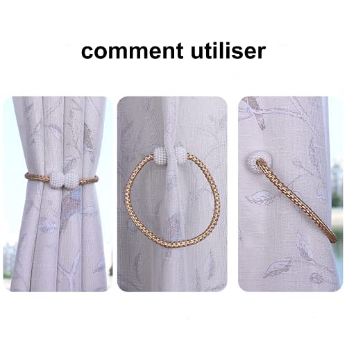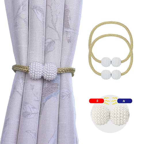 BigCheer Fermatende Magnetico per Tenda, con Perle Decorative, per Tende Piccole, Sottili o Trasparenti,fermatende calamita,Adatto per Camera da Letto, Soggiorno, Ufficio Decorazione(4 Pezzi) (d'oro)