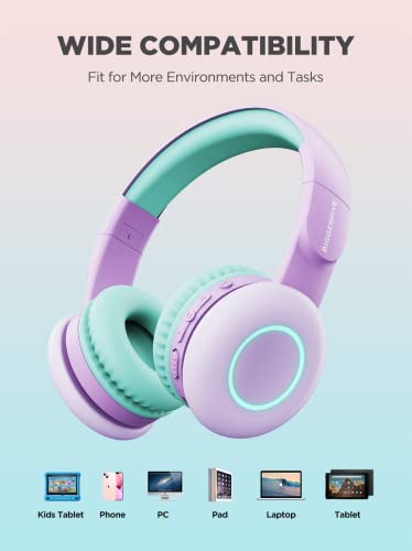 BIGGERFIVE Cuffie Bluetooth per Bambini, Cuffie Bambini Senza Fili con Illuminazione LED, Microfono, Limitatore a 85/94 dB, Cuffie Wireless Pieghevoli Bambina Ragazza per TV/Tablet/PC/Scuola - Viola