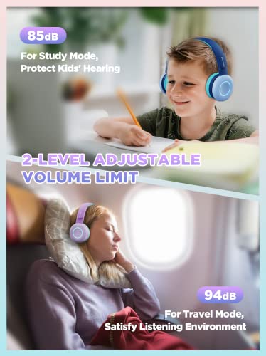 【CONNESSIONE BLUETOOTH STABILE E AMPIA COMPATIBILITÀ】Queste cuffie wireless per bambini utilizzano la connessione Bluetooth 5.0 per garantire una connessione stabile e un raggio di azione che raggiunge i 10 metri. Utilizzale con tutti i tuoi d