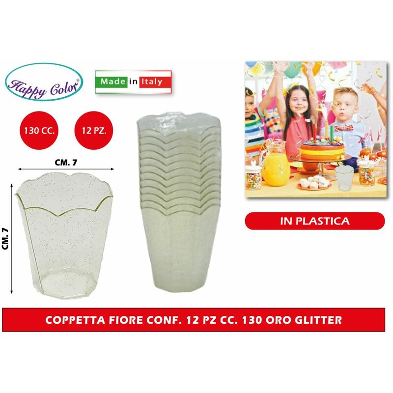 Coppetta plast. fiore cf.12 pz. cc.130 oro glitter