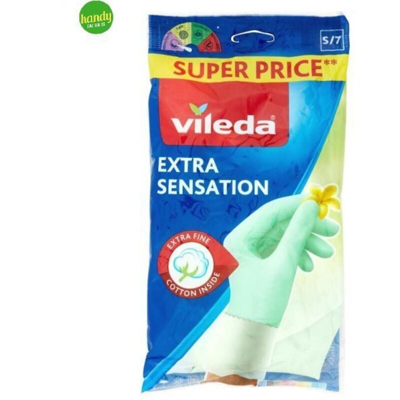 VILEDA GUANTO IN LATTICE EXTRA SENSATION PICCOLO Confezione da un paio di guanti Guanto in lattice naturale Rivestito internamente in cotone Protezione di un guanto casalingo Alta sensibilità grazie alla sottilezza I guanti Vileda Extra Sensation . grazie al ridotto strato in lattice che li rende i guanti casalinghi più sottili del mercato. garantiscono la massima sensibilità ideale per i lavori domestici più delicati. Sono in puro lattice naturale ed hanno il rivestimento interno in puro cotone. La presenza di lattice di gomma naturale potrebbe causare reazione allergiche in alcuni individui....