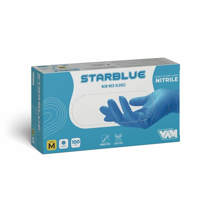 Conf. 100 pz guanti in nitrile senza pol vere new med starblue tg. s