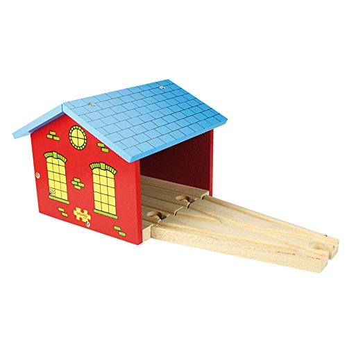 En este cobertizo de madera hay espacio para dos locomotoras, que son conducidas a su lugar por la pista