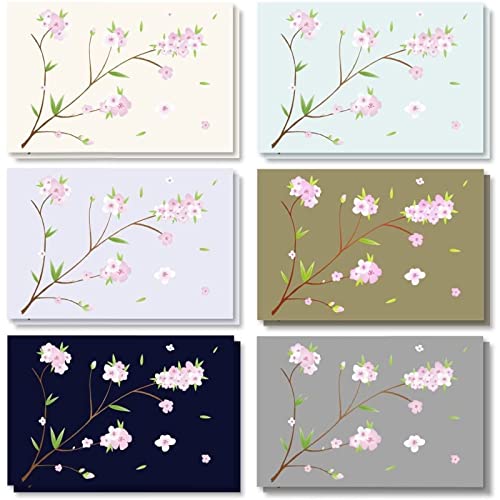 Biglietti d'Auguri con Fiori di Ciliegio Giapponesi con Buste Incluse, Confezione da 120 Biglietti per Ogni Occasione a Tema Floreale in 6 Motivi, 10.2 x 15.2 cm