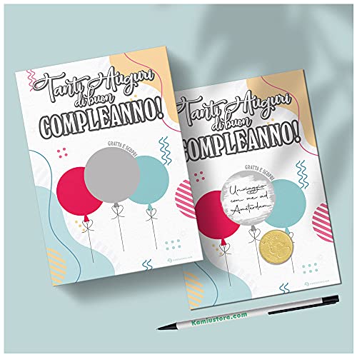 Biglietti d'auguri gratta e vinci - Set 2 biglietti di compleanno fai da te con busta - kamiustore