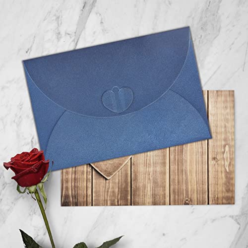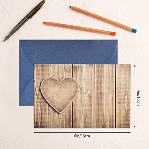 Biglietti d'auguri vuoti con cuore in legno con buste blu — Compleanno, laurea, matrimonio, simpatia, Thinking of You, Thank You