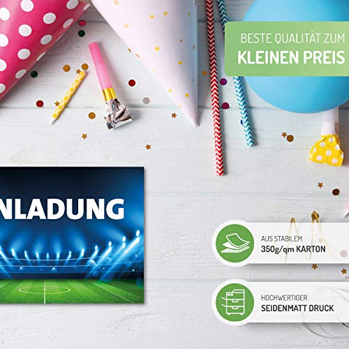 Set di 15 biglietti d'invito per compleanno di bambini, motivo calcio, inviti per feste per tutte le occasioni (modello in lingua tedesca)