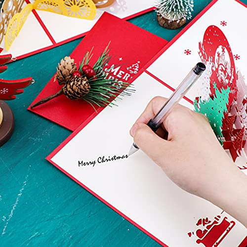 【Design 3D】 Riceverai 4 biglietti di auguri di Natale con stili diversi, tra cui biglietti di albero di Natale, biglietti di Babbo Natale, biglietti di renne, ecc., Il modello 3D è tagliato al laser, unico ed elegante, aggiungerà un'atmosfera festosa.