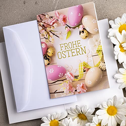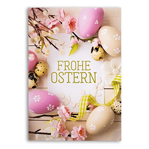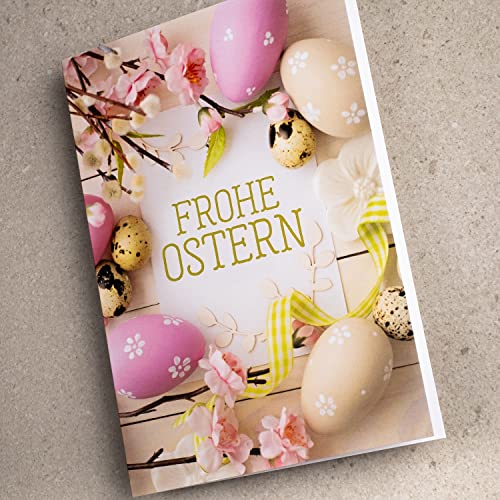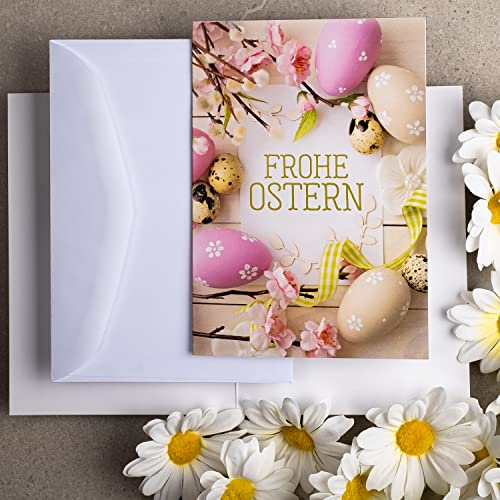 ART NUVO - Biglietti pasquali esclusivi nr 5 - Set di 10 biglietti da 120 x 170 mm con scritte dorate e buste bianche