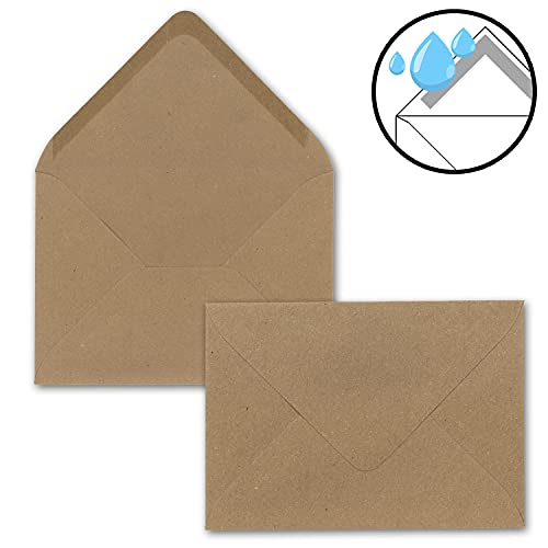 Busta: più grande di DIN B6 - Dimensioni 131 x 181 mm - Grammatura: 120 g/m² - Busta senza fodera, senza finestra - colla a umido, patta a punta - Colore: marrone - carta kraft non colorata