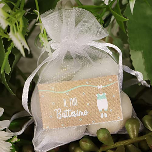 Confezione da 50pz bigliettini bomboniere per battesimo bimbo, colore verde acqua, non azzurro.