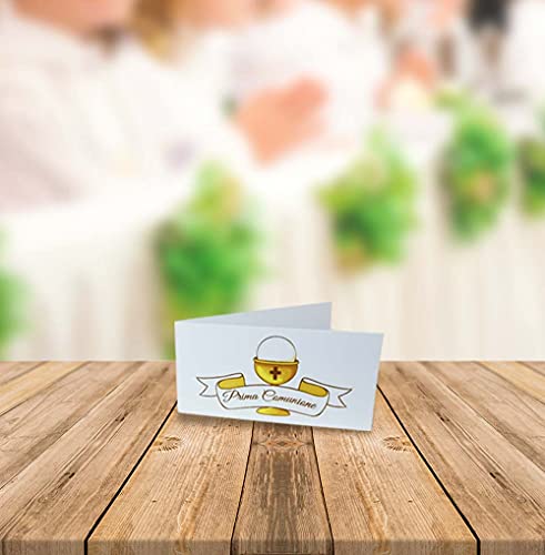 Bigliettini con inviti Prima Comunione mod. Calice neutri in set da 25, 50, 100, pezzi - Kamiustore (25 Inviti+bigliettini)