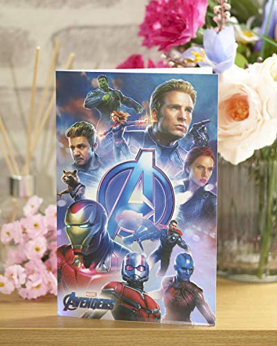 Biglietto di auguri di compleanno degli Avengers, ideale come regalo per lui, Avengers Endgame - Avengers con capitano Marvel, Iron Man, Thor, Hulk, Vedova Nera, Capitan America, Rocket, Ant Man - Marvel