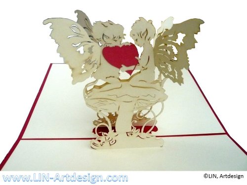 LIN - Pop Up 3D Biglietto d'auguri per matrimonio, Elfi e cuore