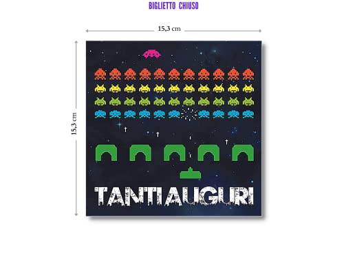 Biglietto Auguri Musicale con Gioco Space Invaders, formato 15.3 x 15.3 cm