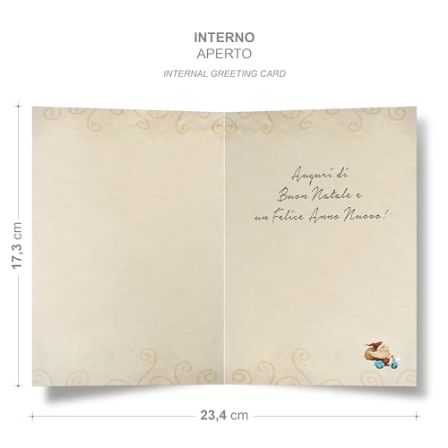 Biglietto Auguri NATALE e BUONE FESTE | con busta abbinata | dettagli glitter in rilievo | Made in Italy (BABBO NATALE IN MOTO)
