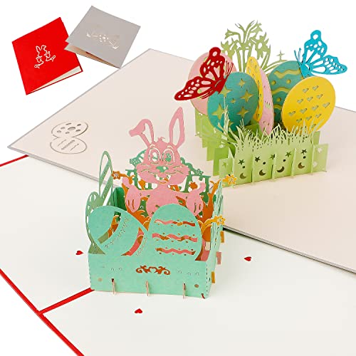 Biglietto di Auguri 3D Pop-up per Compleanno, Biglietti di Auguri di Compleanno, Biglietti Pop-up con Taglio Laser, Buste Incluse (Easter Egg and Bunny)