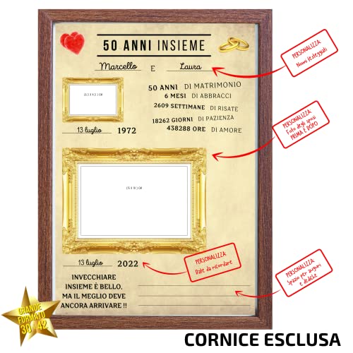 B3AL Biglietto Auguri Idea Regalo per 50 Anni matrimonio più 25 segnaposti Poster Ricorrenze Nozze d'oro per foto e dediche grande formato Gadget Personalizzabile
